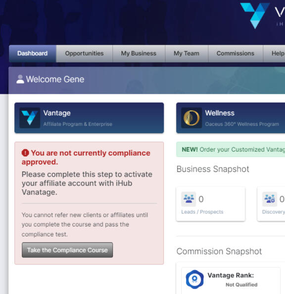 Onboarding Help...Welcome to the Team! You have just been introduced to a most unique learning and earning opportunity. You'll first want to spend a few hours completing the required training through your iHub Vantage back office. You'll then have access to your own referral links to all of the Vantage Oaceus suite of products.