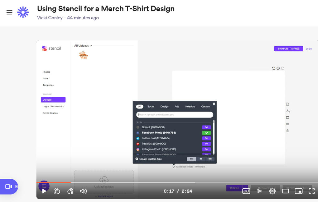 We specifically talked about Get Stencil. They have a custom template size for your Merch T-Shirts that makes it super easy. I put together this quick Loom Video Screenshot showing an example of how this works.